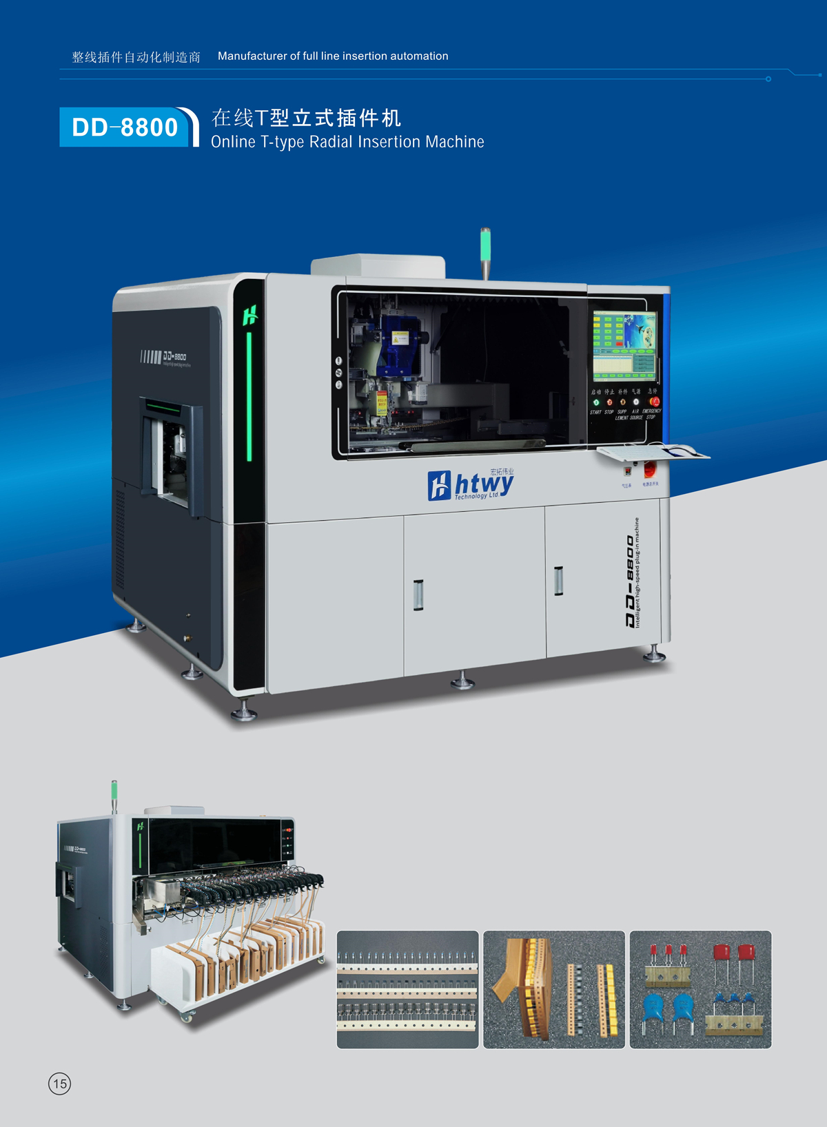 在線T型立式插件機(jī)根據(jù)不同產(chǎn)品按設(shè)定的程序?qū)⒏鞣N標(biāo)準(zhǔn)編帶立式元件自動(dòng)插入在印制電路板(PCB) 上, 具有剪腳固定功能及檢測功能,達(dá)到高速度,高精度,高穩(wěn)定的插裝效果。
